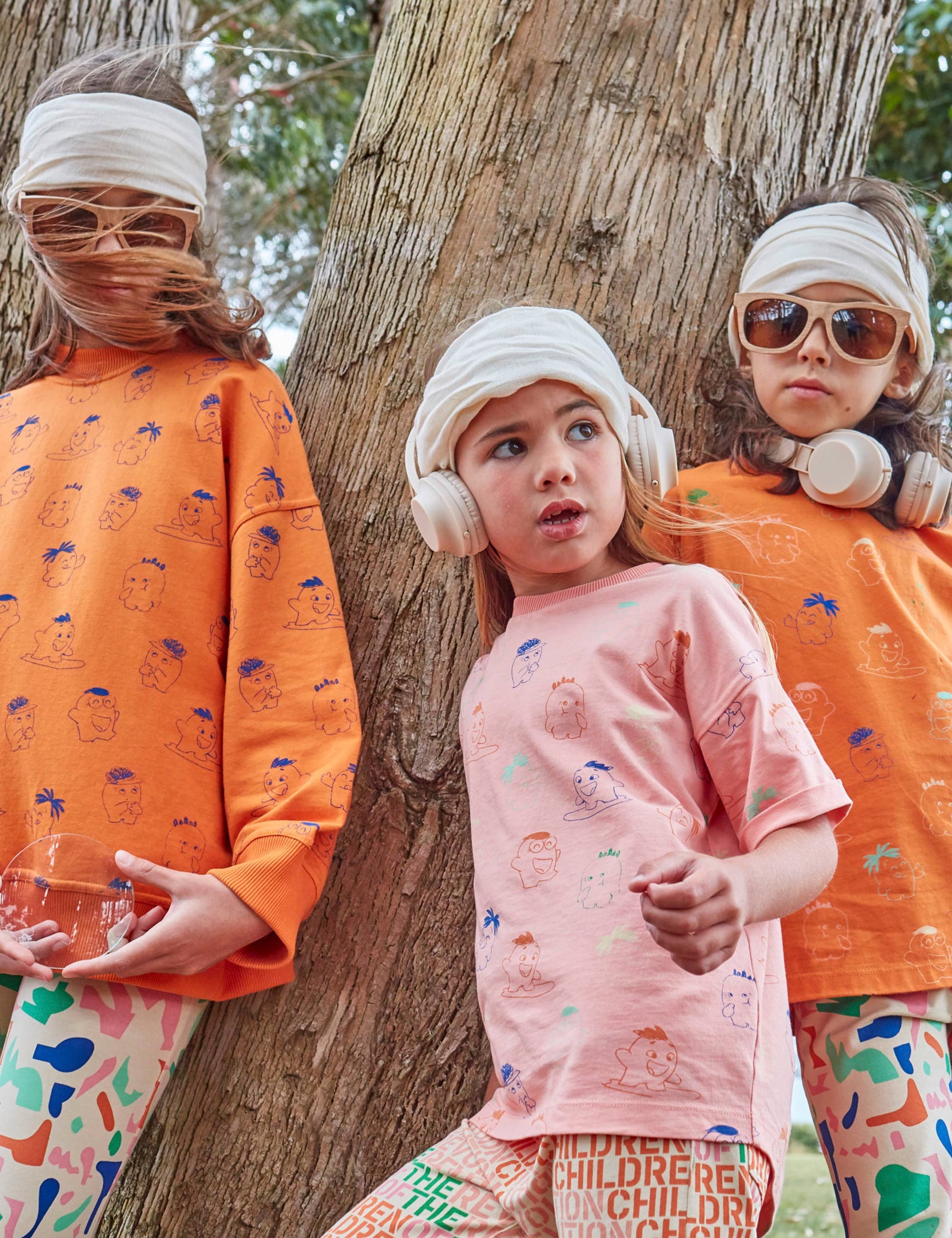 Short-sleeved printed tee with a fixed cuff, dropped shoulders, and a crew neckline. Side positional graphic and a longer curved back.