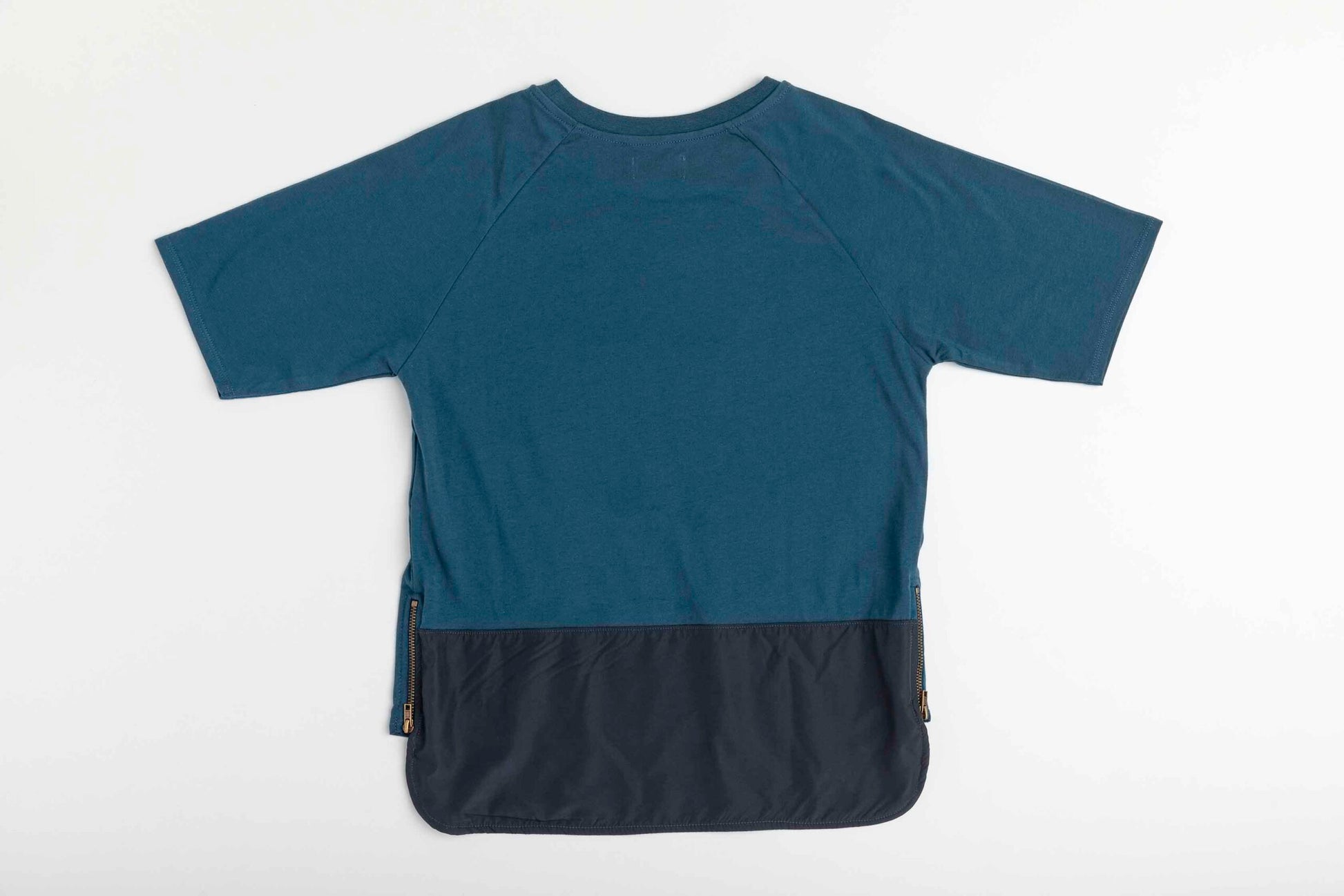 Plain raglan 3/4-sleeve crew neck t-shirt with a contrasting Wawie graphic print on the front, decorative zippers on the sides, and a contrasting plain weave hem on the back.