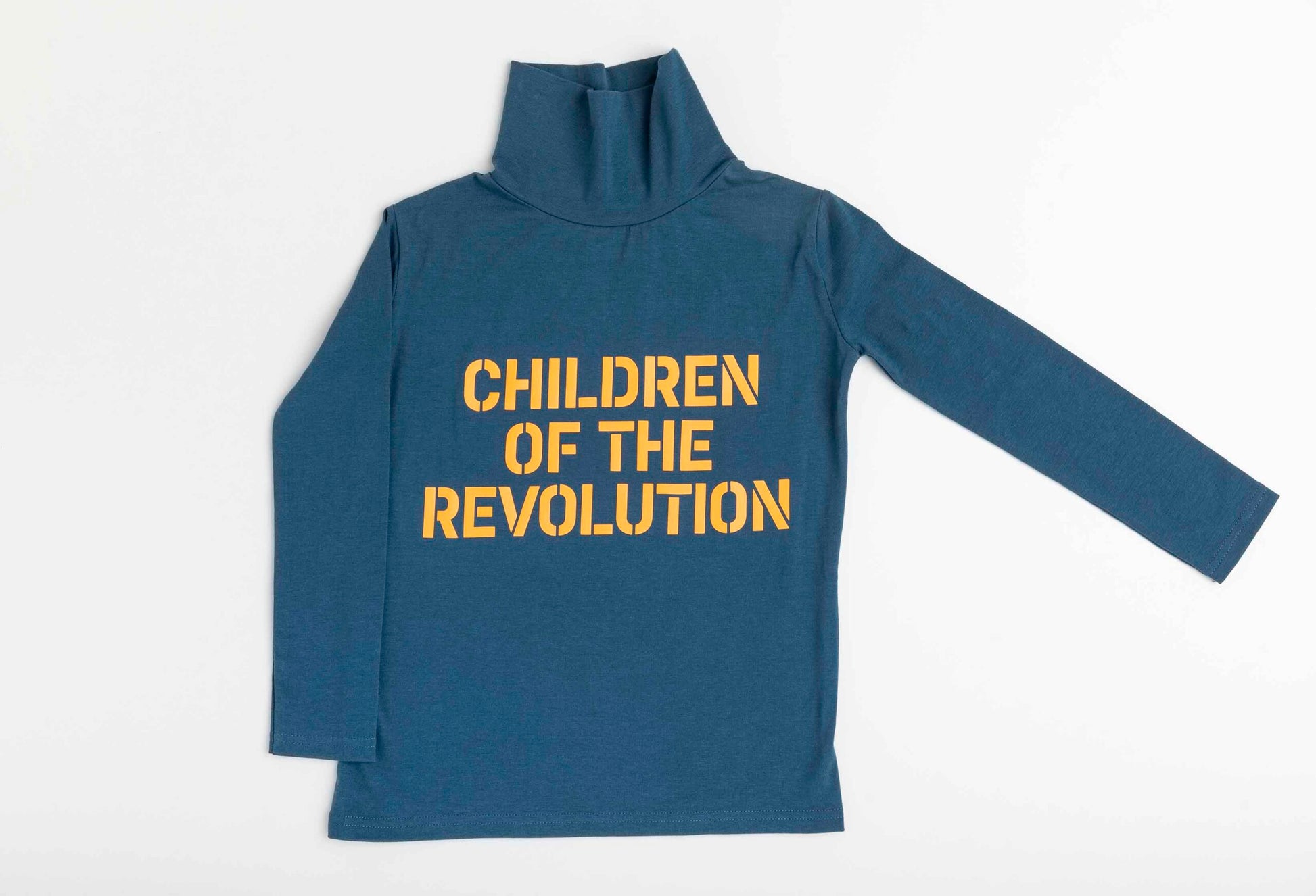 Plain long-sleeved turtleneck T-shirt with contrasting graphic print on the front.