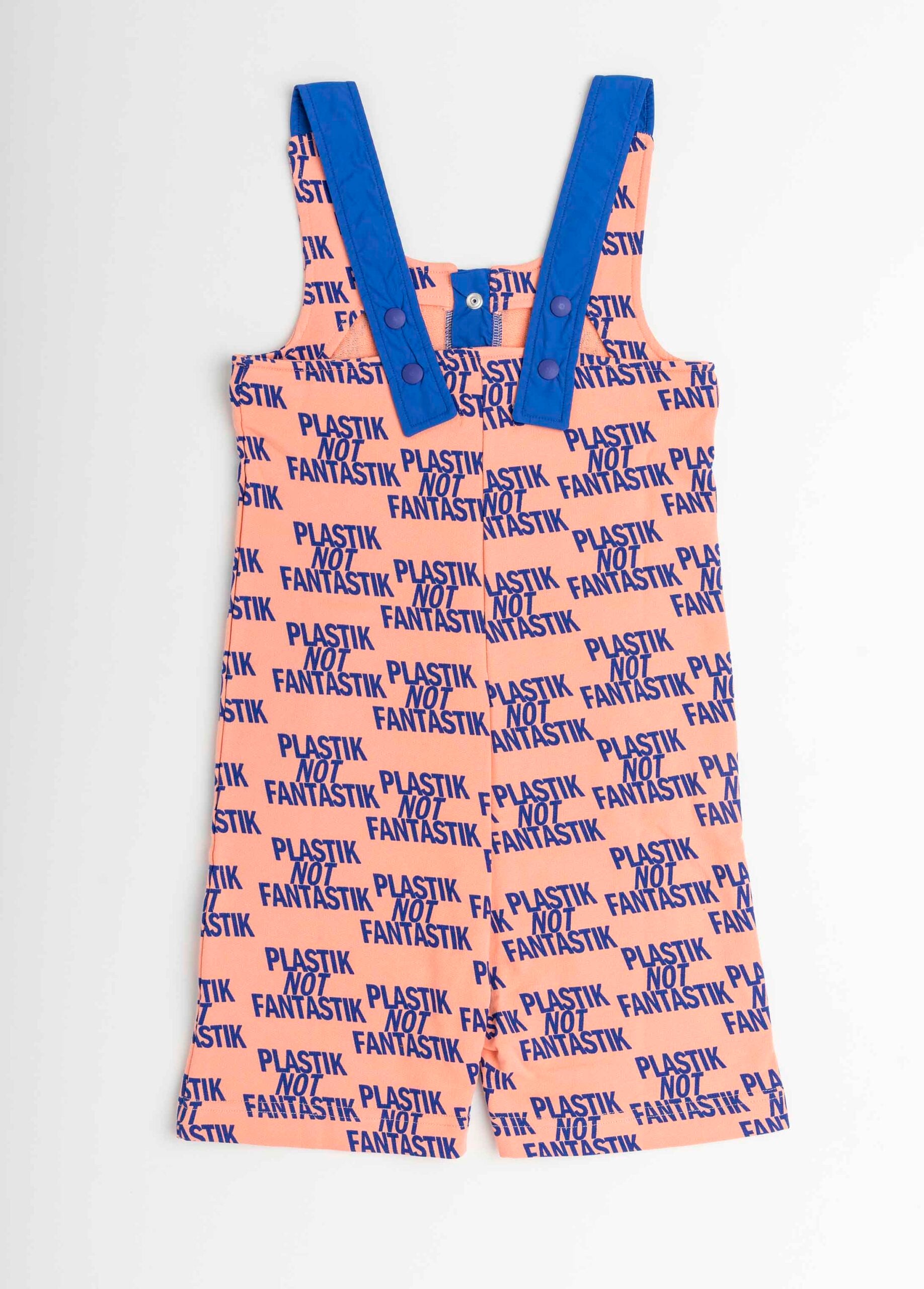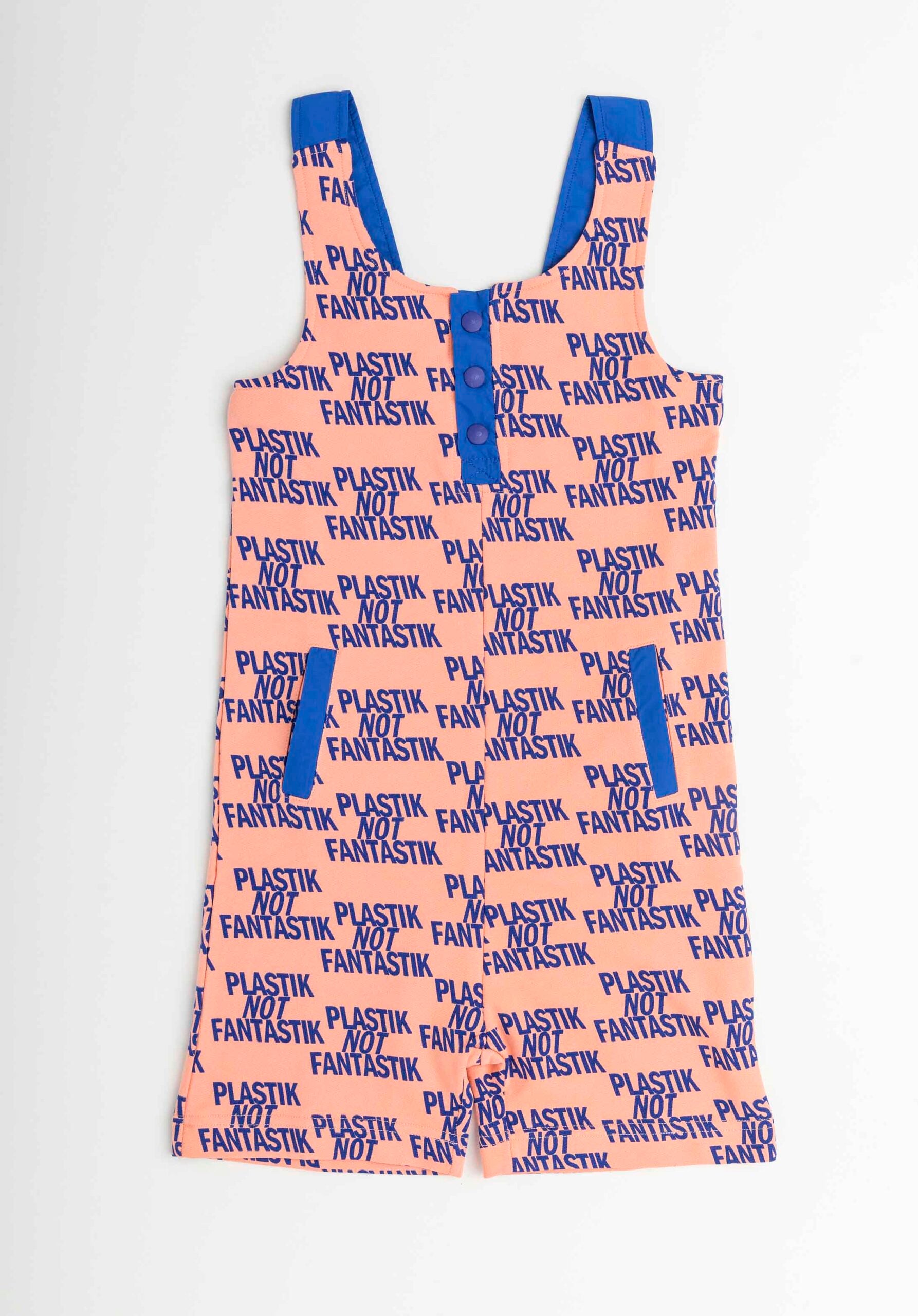 Printed short jumpsuit with flat details on the central placket and crossed straps at the back.